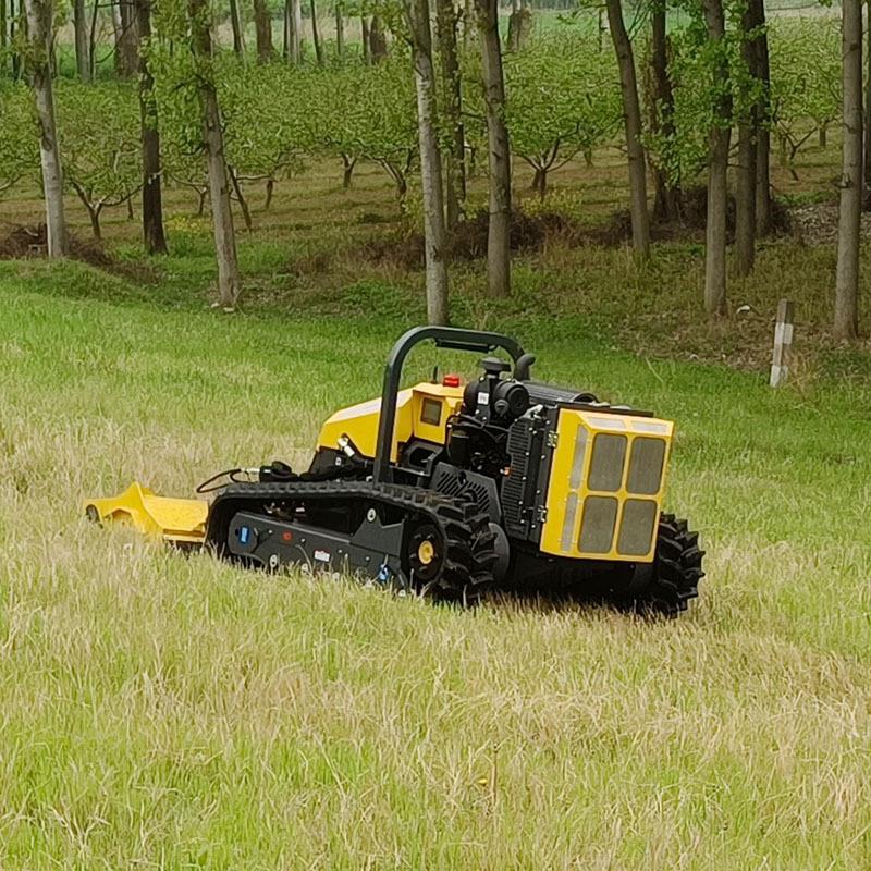 随着机械化的不断发展,农业的机械化程度也越来越高,很多的高科技产品代替了人工劳作,既有效率也安全。近期我公司研发了新款的全智能遥控割草机,可以在55度的斜坡上进行割草作业,是一般的设备不能做到的。